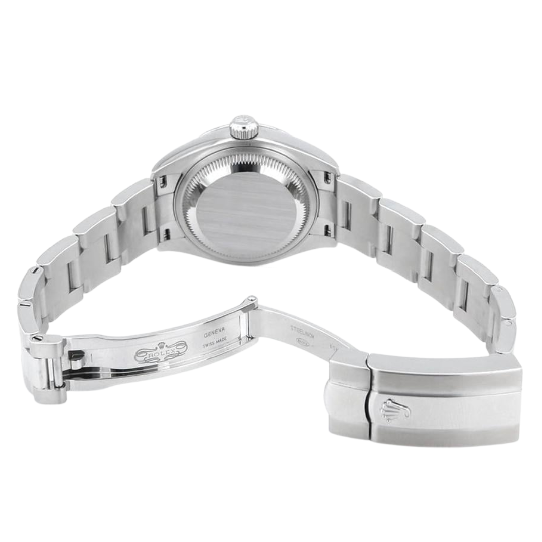 Powered by the Rolex Calibre 2236 automatic movement, this model delivers outstanding precision, a 55-hour power reserve, and exceptional resistance to shocks and magnetism thanks to its advanced Syloxi hairspring. The date aperture at 3 o’clock, enhanced by the Cyclops lens, ensures clear readability, while its Superlative Chronometer certification guarantees consistent, reliable performance.