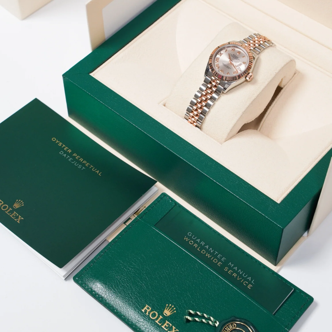 Presented in immaculate condition and supplied with its original full set of paperwork, box, and certification, alongside a 12-month WLC warranty, this example represents a highly attractive acquisition. As demand continues to strengthen for Everose Rolesor Datejust models in smaller case sizes, the 279171 stands as a future-proof investment—offering timeless appeal and long-term potential as a dependable asset in a well-curated watch portfolio.