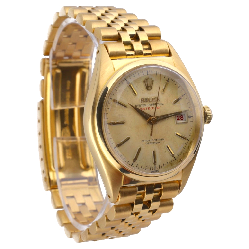 A Rolex Datejust in full 18ct yellow gold, representing a rare early example from the first generation of Datejust production. The case is paired with a matching yellow-gold Jubilee bracelet, offering both intrinsic value and historical significance in the evolution of one of Rolex’s most important models.