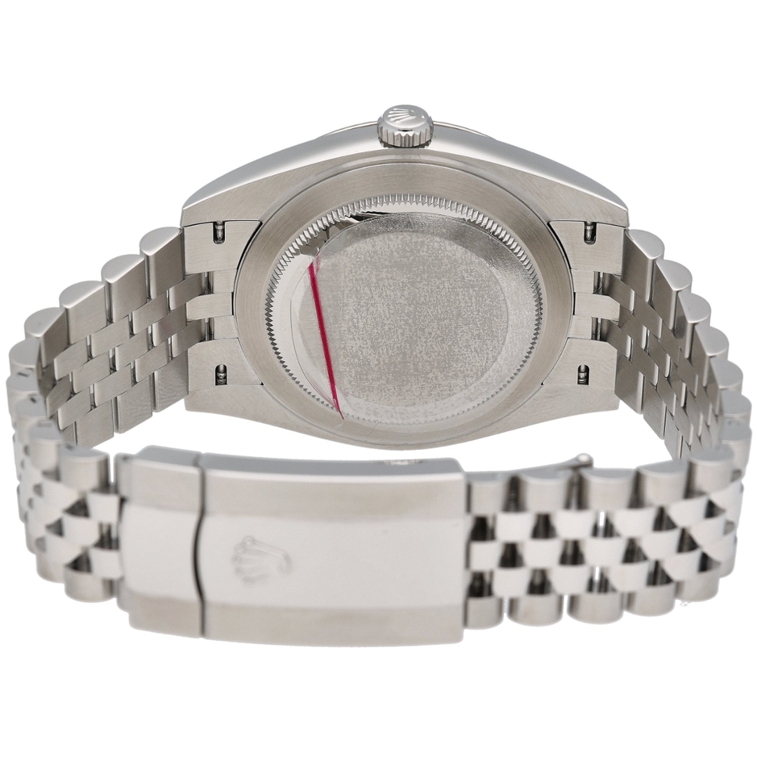 At its core, this Datejust is powered by the Rolex Calibre 3235 automatic movement, a COSC-certified chronometer renowned for its superior accuracy, 70-hour power reserve, and shock-resistant design. Equipped with Rolex’s patented Chronergy escapement, this movement enhances efficiency and durability. The date function at 3 o’clock, magnified by the Cyclops lens, ensures easy readability, while the Oyster case construction and screw-down crown provide 100-meter water resistance, reinforcing Rolex’s commitment to reliability and craftsmanship.