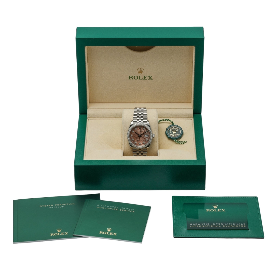 Powered by the Rolex calibre 3235 automatic movement, this model offers outstanding precision, a 70-hour power reserve, and Rolex’s latest advancements in performance and durability. The 36mm Oyster case provides a perfect balance of presence and wearability, while the Jubilee bracelet enhances both comfort and the refined aesthetic expected from a diamond-set Datejust of this calibre.
