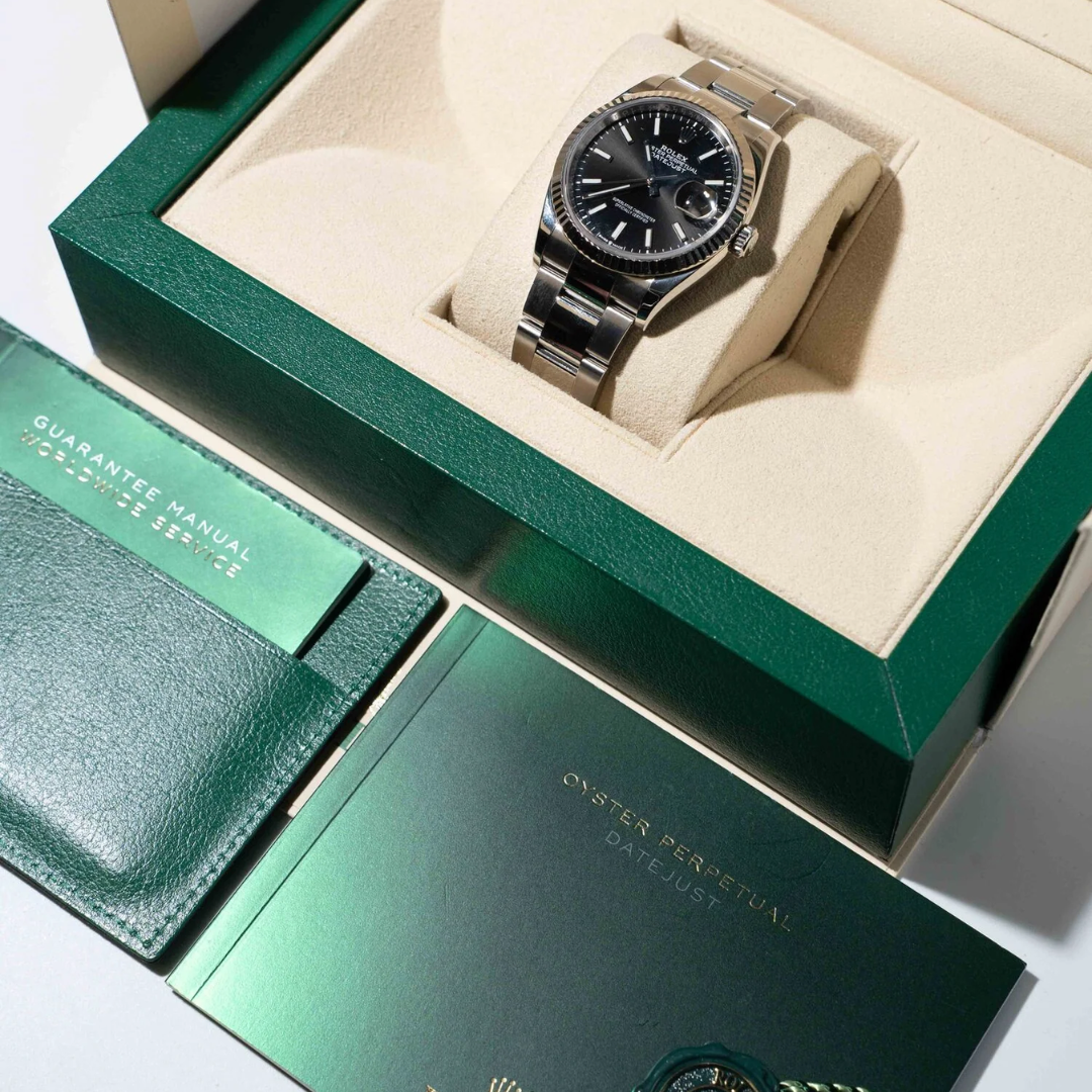 Powered by the Rolex calibre 3235 automatic movement, delivering exceptional precision, reliability, and a 70-hour power reserve. The Datejust 36 remains one of Rolex’s most enduring designs, offering timeless proportions, modern performance, and everyday versatility.