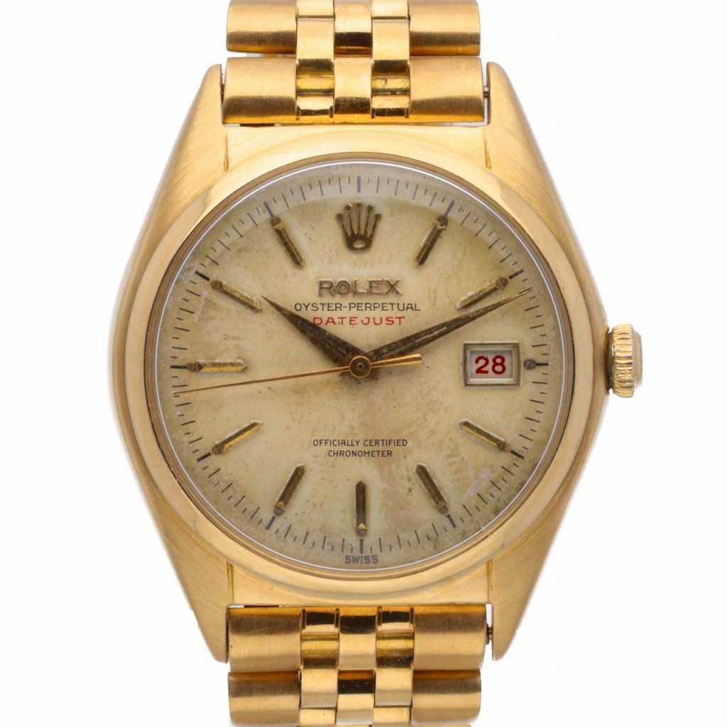 A Rolex Datejust (ref. 5030) is a remarkable and highly collectable piece, crafted entirely from 18ct yellow gold and dating back to 1949, placing it among the earliest examples of the iconic Datejust line. The 36mm case, paired with the original Jubilee bracelet, exudes classic Rolex elegance, while the cream dial showcases a charming vintage character that speaks to its age and authenticity.