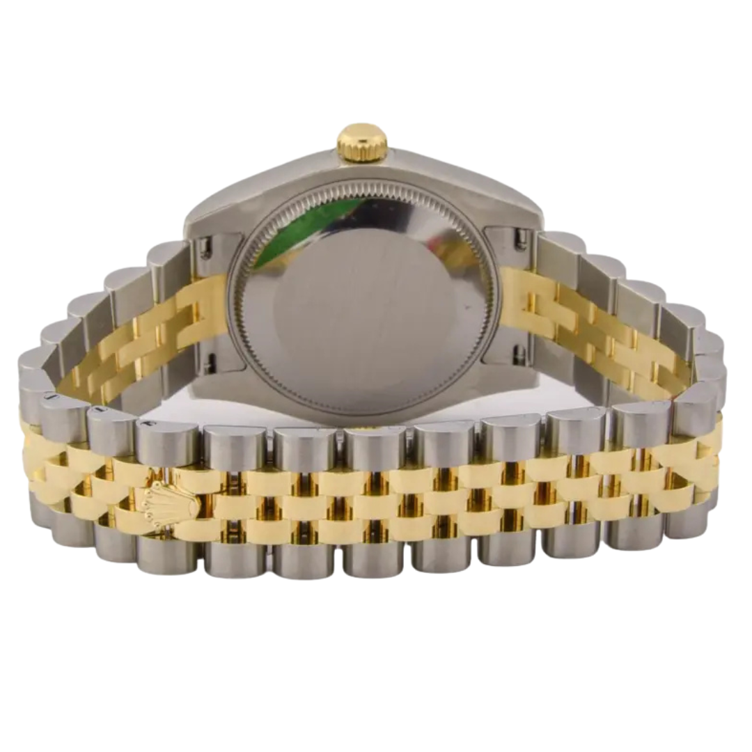 Powered by Rolex’s dependable automatic movement for this era, the watch delivers smooth, reliable performance with the signature instantaneous date change visible through the cyclops lens at 3 o’clock. Its Jubilee bracelet — stainless steel outer links with yellow-gold centre links — completes the aesthetic beautifully and remains one of the most comfortable bracelets Rolex has produced.