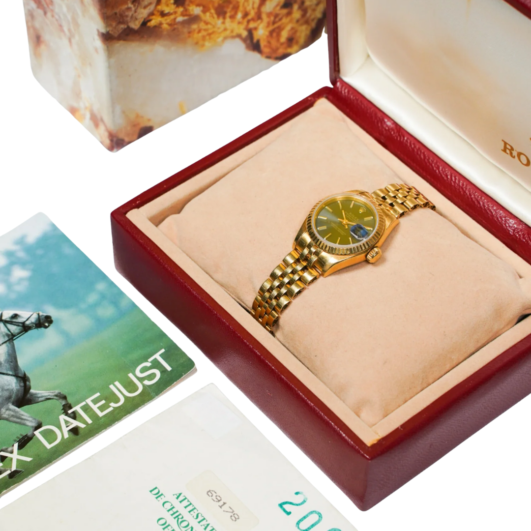 Presented in immaculate condition, this example comes boxed, certified and accompanied by authenticity paperwork for complete reassurance. It is further supported by a 12-month WLC warranty. With full precious-metal construction, a captivating blue dial and timeless design, this 69178 represents an exceptional opportunity to acquire a truly classic ladies’ Rolex with enduring appeal.