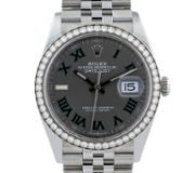 This exquisite Rolex Datejust 36, model 126284RBR, is a modern masterpiece that blends refined luxury with unmistakable Rolex character. Crafted from stainless steel and topped with an 18ct white gold diamond-set bezel, it exudes sophistication and brilliance from every angle. The radiant green palm dial — one of Rolex’s most distinctive and sought-after modern designs — adds a vibrant, contemporary twist to the timeless Datejust aesthetic, symbolising both prestige and individuality.