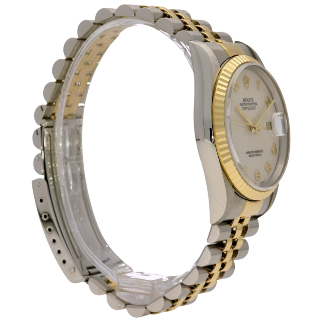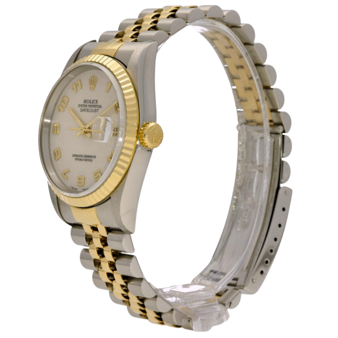 A Bi-Metal Rolex Datejust Watch, Stainless Steel and 18ct Yellow Gold with a Yellow Gold Fluted Bezel and a Cream Jubilee Dial.