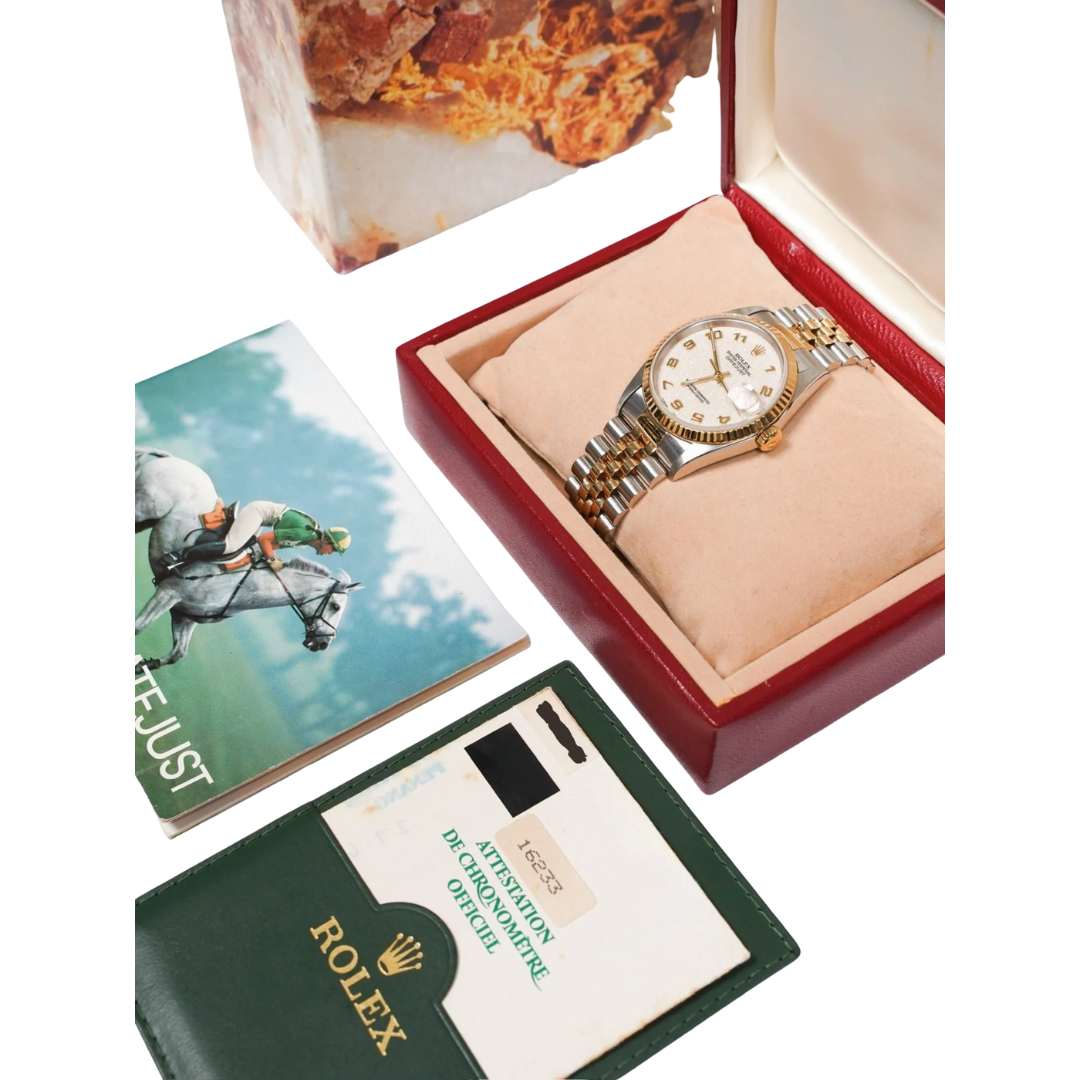 Presented in immaculate condition, this example comes with its original Rolex paperwork, is boxed, and is certified, adding further value for collectors seeking complete sets. A 12-month WLC warranty is included for peace of mind. With its desirable cream Jubilee dial and iconic two-tone construction, this 16233 is an exceptional representation of the Datejust’s enduring appeal.