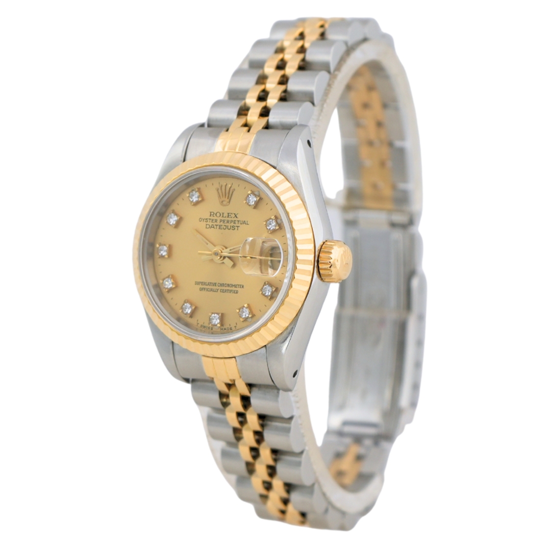 A Bi-Metal Rolex Datejust 26 Watch, Stainless Steel & 18ct Yellow Gold with a Yellow Gold Bezel on a Champagne Dial with Diamond Numerals