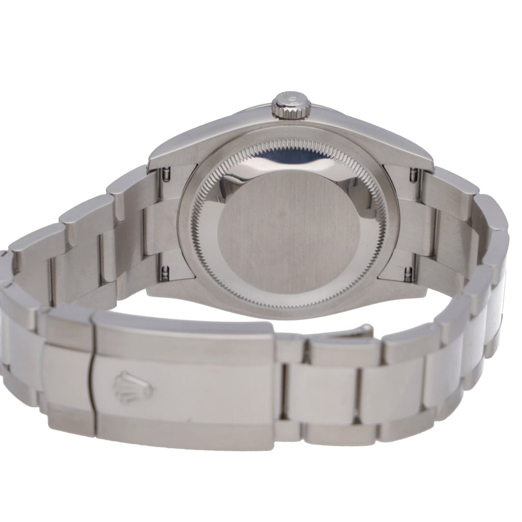 At the heart of this Datejust beats the Rolex Calibre 3235, an automatic movement renowned for its exceptional precision and reliability. The Calibre 3235 offers a 70-hour power reserve and features Rolex's innovative Chronergy escapement, improving energy efficiency and accuracy. The movement powers the iconic date window at 3 o’clock, which changes precisely at midnight, and the smooth-sweeping second hand further emphasises Rolex's commitment to high-end craftsmanship.