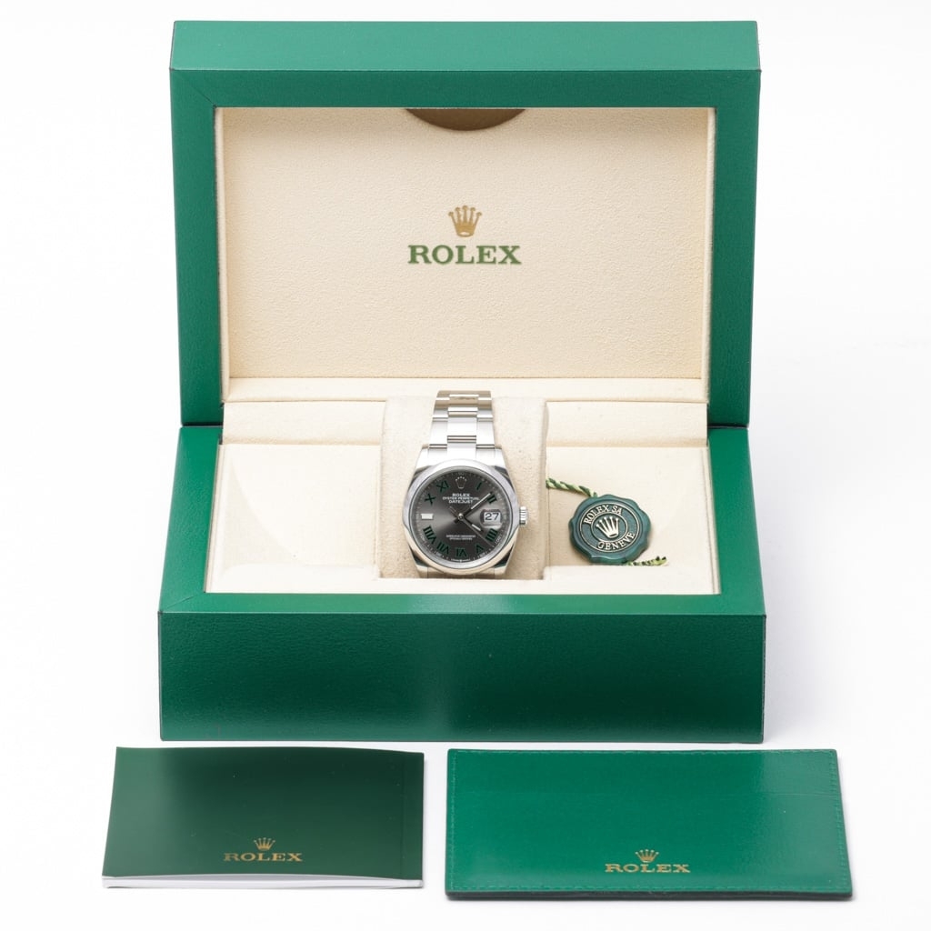Presented in immaculate, unworn condition, this 2024 model has the complete original paperwork confirming its authenticity and is covered by the Rolex manufacturer's warranty until 2029. Boxed and certified, the watch represents a sound investment and a stylish, everyday companion for its next owner. The stainless steel Datejust with a slate dial remains one of the most versatile and popular Rolex models, ideal for those who appreciate elegance combined with performance.