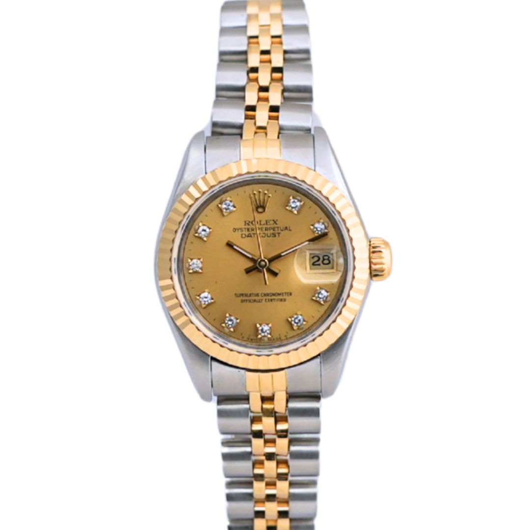A Bi-Metal Rolex Datejust 26 Watch, Stainless Steel & 18ct Yellow Gold with a Yellow Gold Bezel on a Champagne Dial with Diamond Numerals