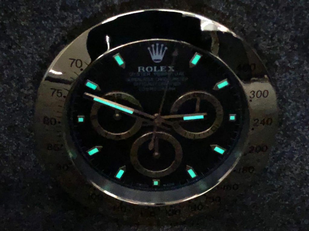 A statement piece measuring approximately 14 inches in diameter, height, and width, this clock is perfectly suited for offices, watch rooms, or contemporary interiors, bringing a confident and recognisable centrepiece that reflects the enduring appeal of the Daytona design.