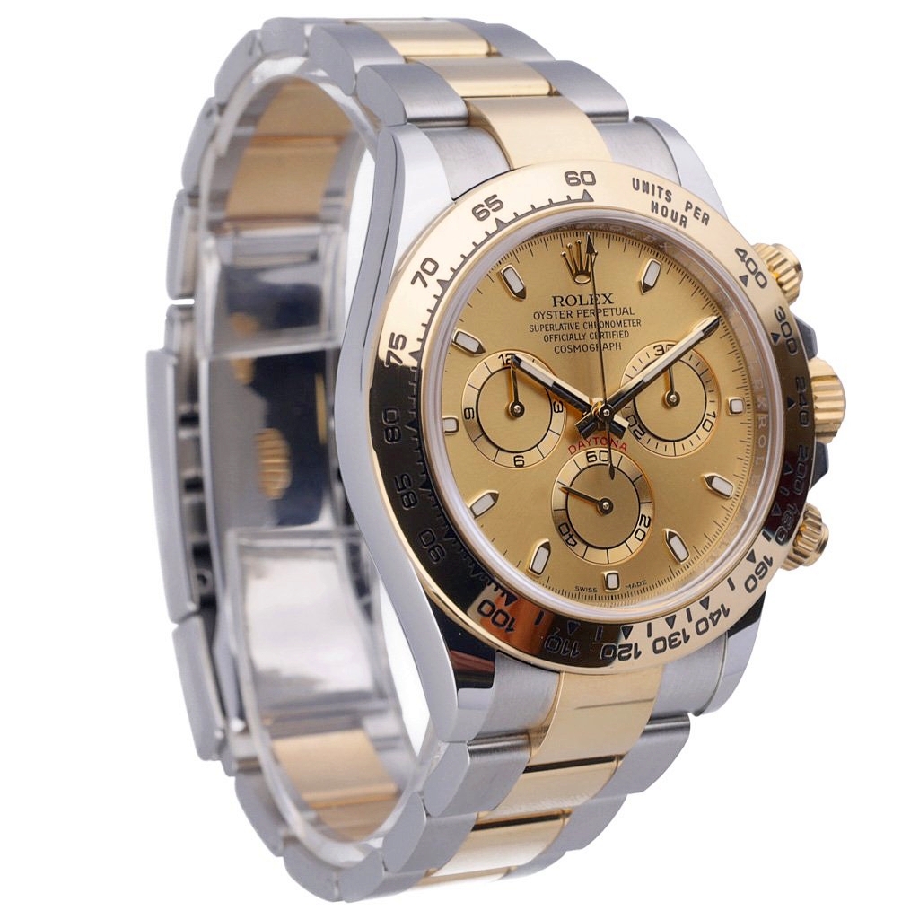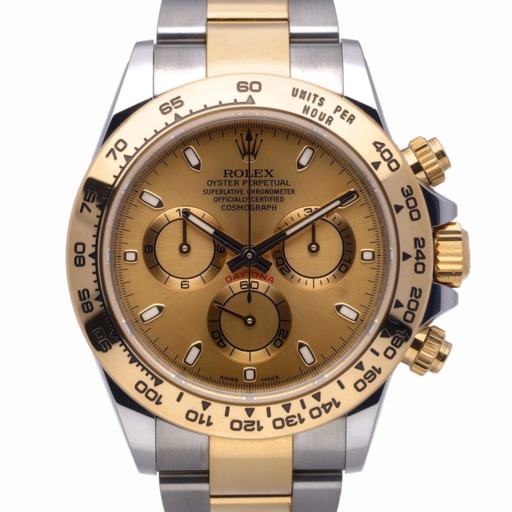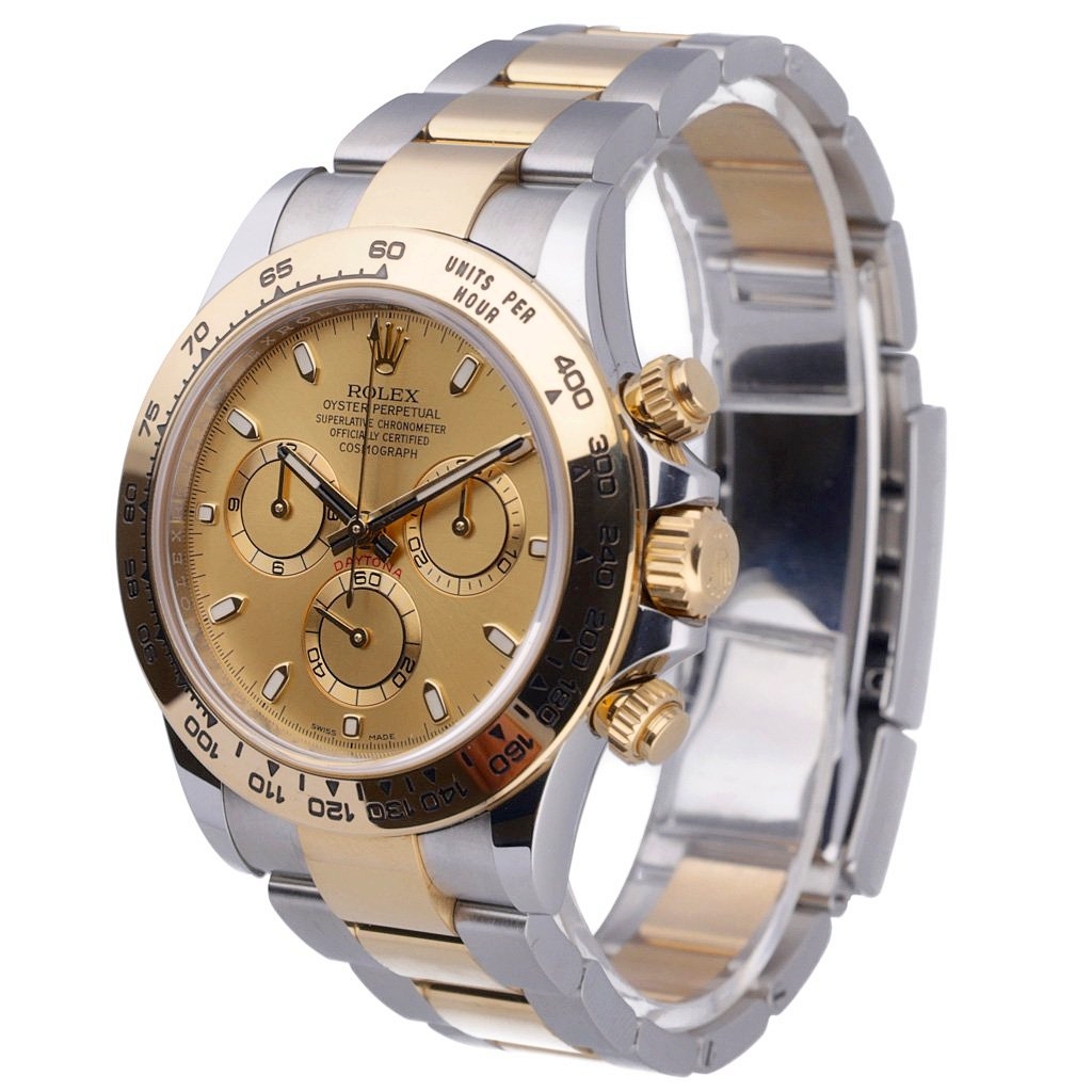 A bi-metal Rolex Daytona 116503, in stainless steel and 18ct yellow gold with a champagne dial, is not only a symbol of timeless style but also an exceptional investment opportunity. The Daytona is one of Rolex’s most iconic and historically significant models, with the bi-metal configuration offering a perfect balance between sporty appeal and classic luxury.