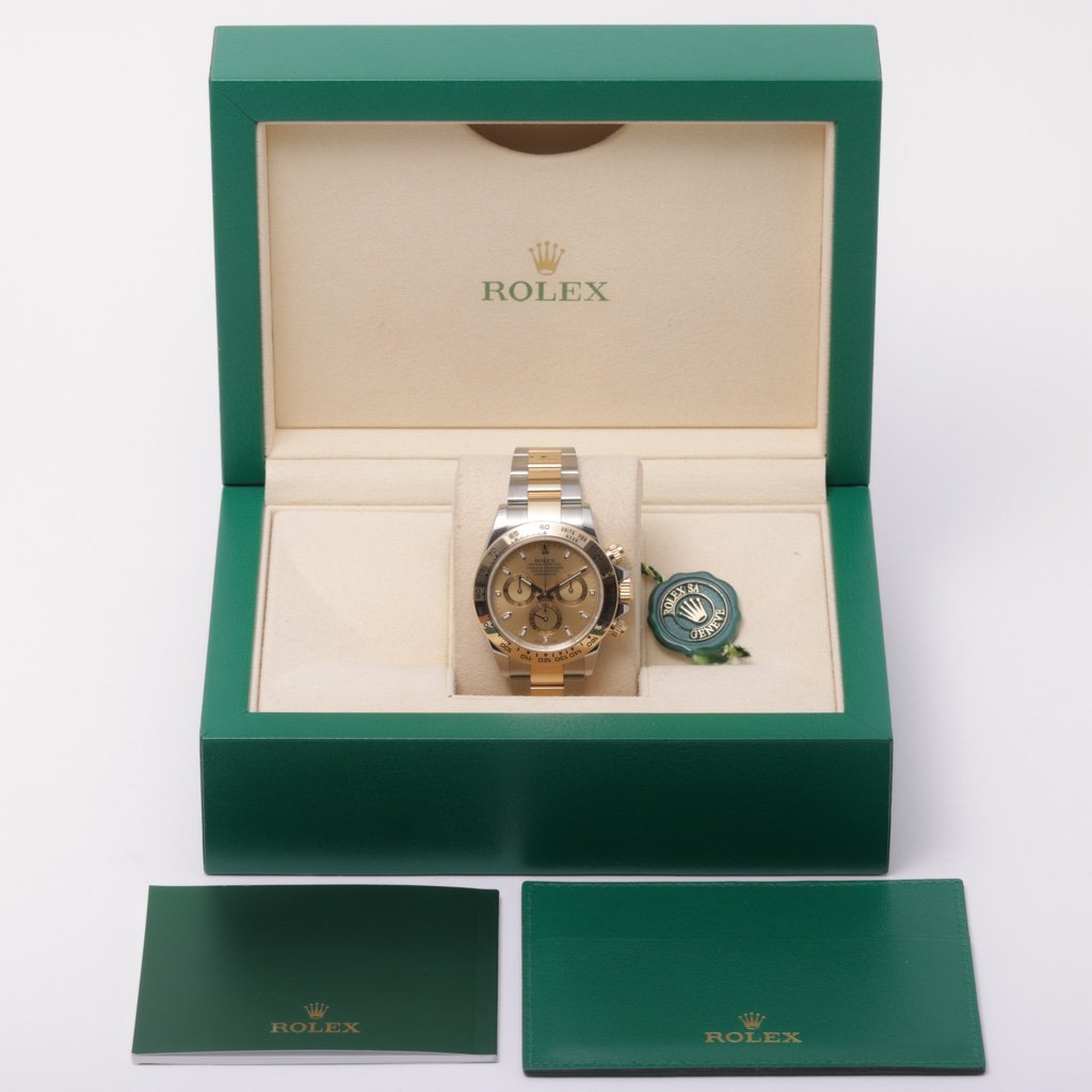 As a 2019 model powered by the Rolex Calibre 4130 automatic movement, this watch delivers both technical excellence and enduring reliability, backed by a reputation that consistently drives demand in the market. The combination of limited production and ongoing collector enthusiasm has resulted in Daytona models—especially those in steel and gold—tending to appreciate over time. The champagne dial is particularly desirable, enhancing the watch’s appeal and marketability.