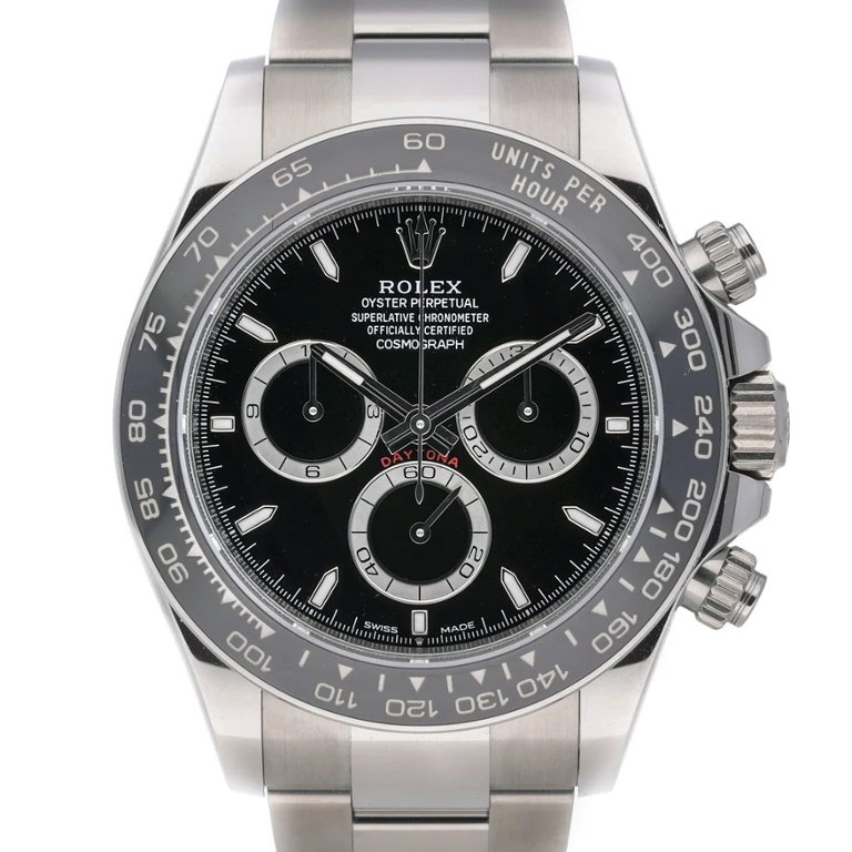 The black dial is meticulously designed with luminescent hour markers and hands, ensuring optimal legibility in various lighting conditions. The chronograph sub-dials are strategically positioned, enhancing both functionality and aesthetic balance. Powered by automatic movement, the Daytona 126500LN guarantees precise timekeeping, reflecting Rolex's commitment to superior performance and reliability.