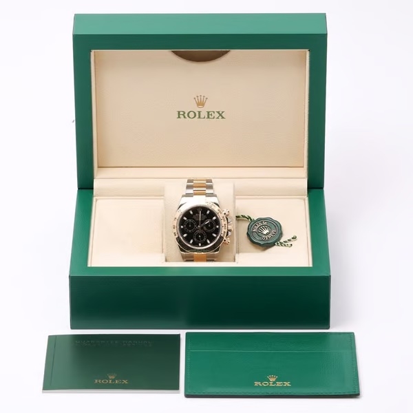 A Rolex Daytona 116503 is an exceptional bi-metal chronograph that combines stainless steel and 18ct yellow gold in a striking, luxury design. Featuring a 40mm stainless steel Oyster case with 18ct yellow gold accents, this 2023 model exudes both elegance and durability.
