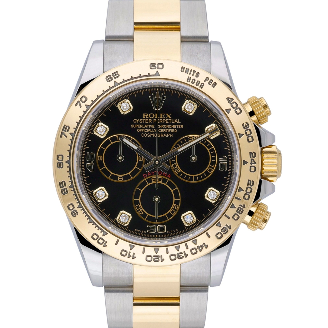 A Bi-Metal Rolex Daytona Watch, Stainless Steel and 18ct Yellow Gold with a Black Original Diamond Dial.