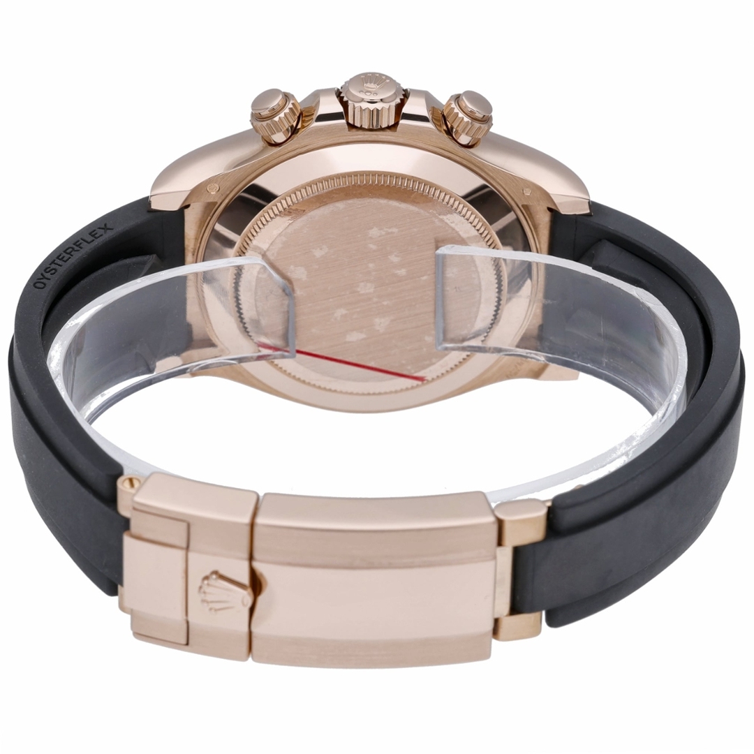 A Rolex Daytona Watch, Black Rubber Strap with an 18ct Rose Gold Case and Clasp and a Black Bezel on a Meteorite Dial.