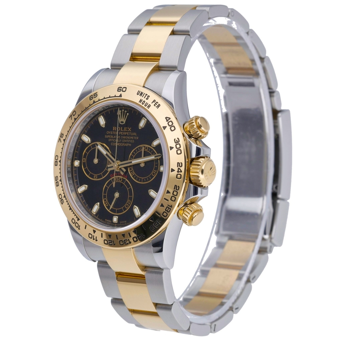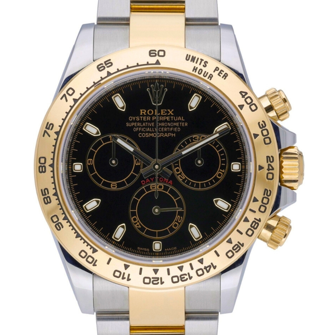 A Bi-Metal Rolex Daytona Watch, Stainless Steel and 18ct Yellow Gold with a Black Dial.