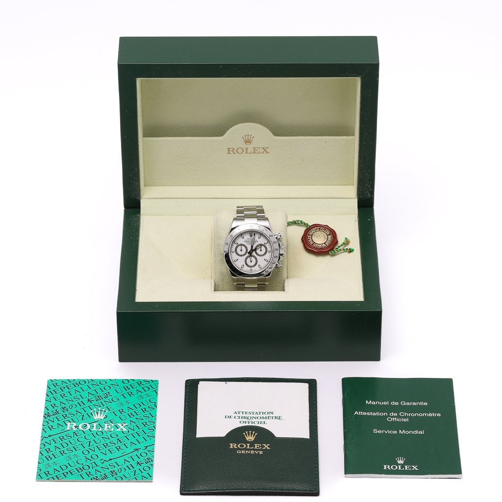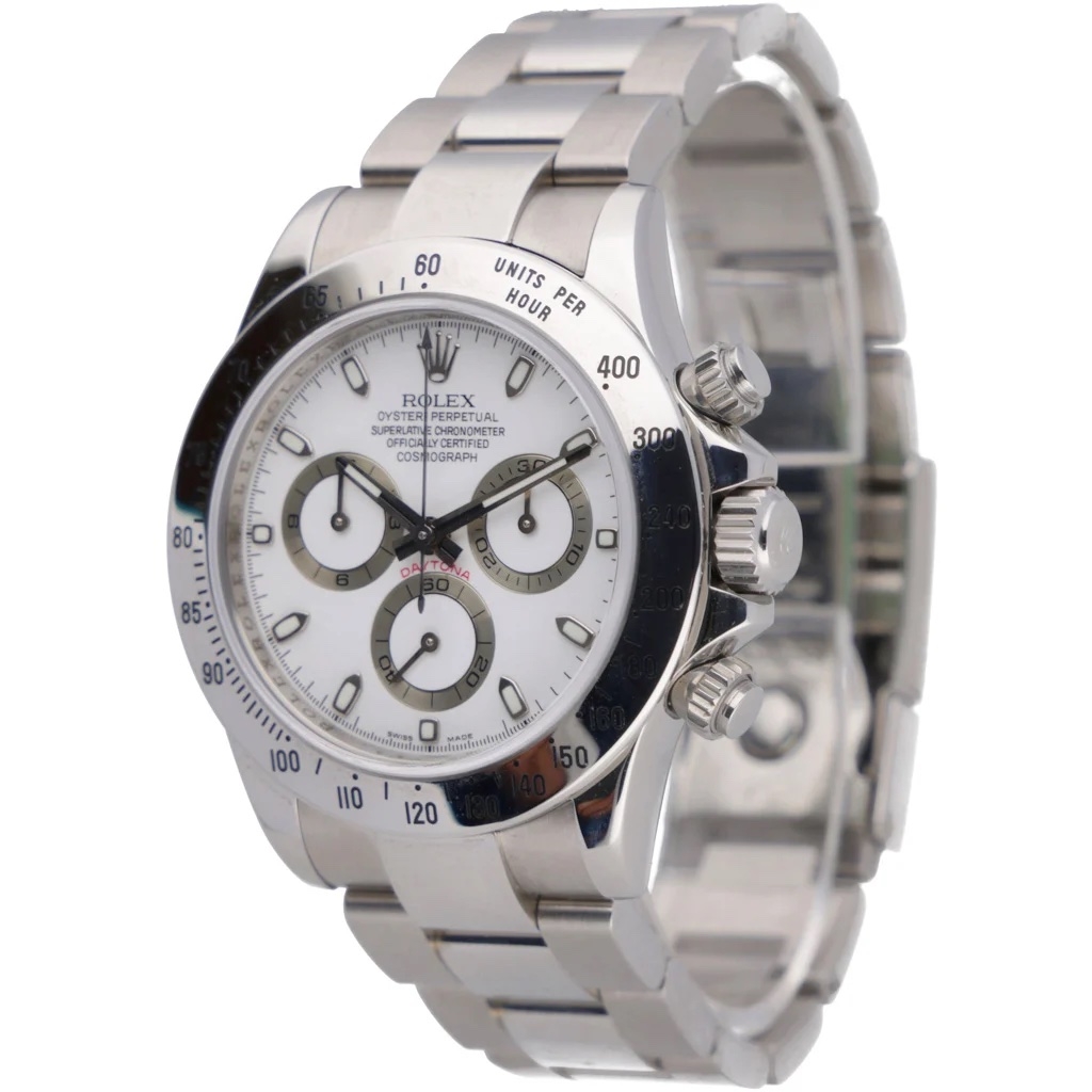 A Rolex Daytona Watch, Stainless Steel on a White Dial
