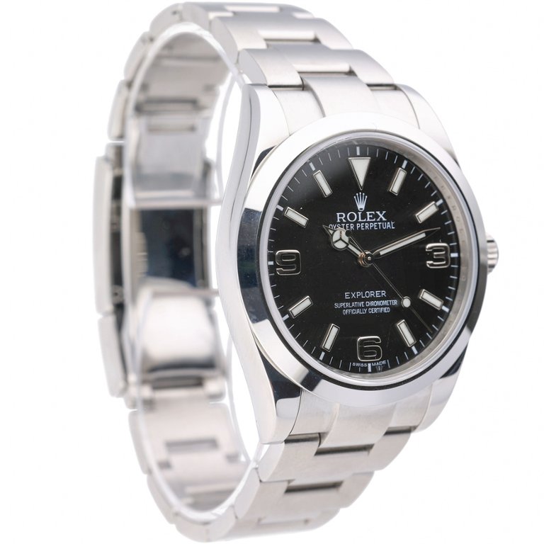 A Rolex Explorer watch crafted in stainless steel, featuring the classic black dial that has become synonymous with Rolex’s legacy of adventure and precision. Model number 214270, this 2011 example is powered by the Rolex Calibre 3132 automatic movement, offering outstanding reliability, accuracy, and resistance to shock and magnetism. The 39mm Oyster case provides the perfect balance between contemporary presence and traditional design, making this reference a modern classic within the Explorer lineage.