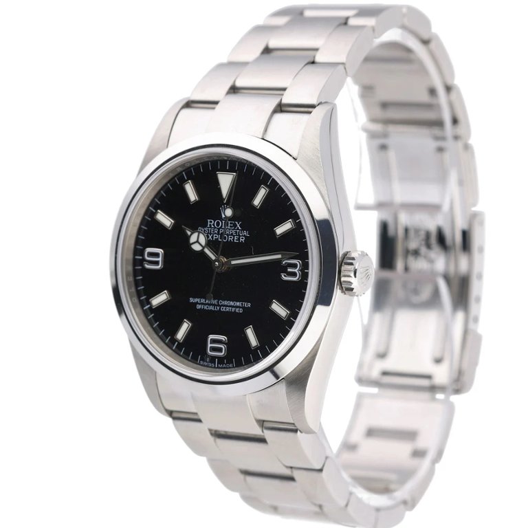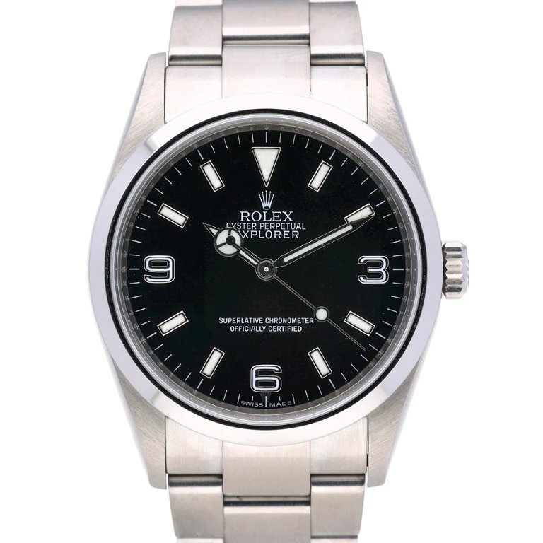 Rolex Explorer is a symbol of adventure and resilience. Crafted from durable stainless steel, this timepiece boasts a sleek black dial that exudes sophistication and versatility.