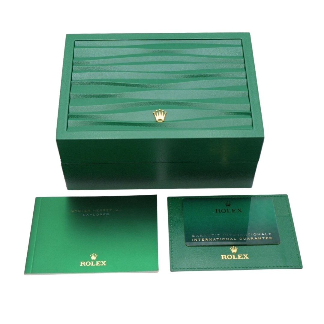 Originally associated with exploration and adventure, the Explorer remains one of the purest expressions of Rolex’s tool watch philosophy. This reference is powered by the Rolex Calibre 3230 automatic movement, an in-house movement offering exceptional precision, durability and a power reserve of approximately 70 hours. The smooth bezel, Oyster bracelet and clean dial layout reinforce the model’s reputation for simplicity, strength and timeless design.