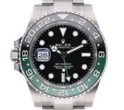 A Rolex GMT-Master II Watch, Stainless Steel with a Green/Black Bezel on a Black Dial.