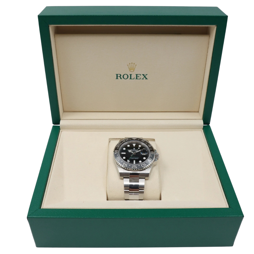 Designed for world travellers and aviation professionals, this 40mm model showcases Rolex’s innovative dual-time functionality via the bold green GMT hand, allowing the wearer to track two time zones simultaneously with ease and precision. The watch is fitted with the Jubilee bracelet, renowned for its elegance and supreme comfort, paired with an Oysterlock safety clasp.