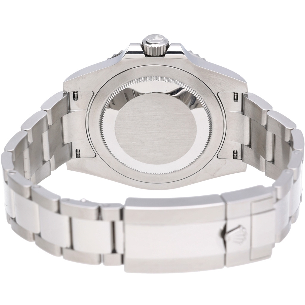 The Rolex Calibre 3285 automatic movement powers this GMT-Master II. This self-winding mechanical movement is equipped with a Chronergy escapement, enhancing efficiency and reliability. With a 70-hour power reserve, it delivers superior performance and Superlative Chronometer certification, guaranteeing an accuracy of +2/-2 seconds per day. The bidirectional rotatable bezel allows seamless adjustment of a second time zone, while the sapphire crystal with Cyclops lens ensures easy date reading.