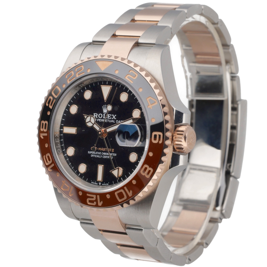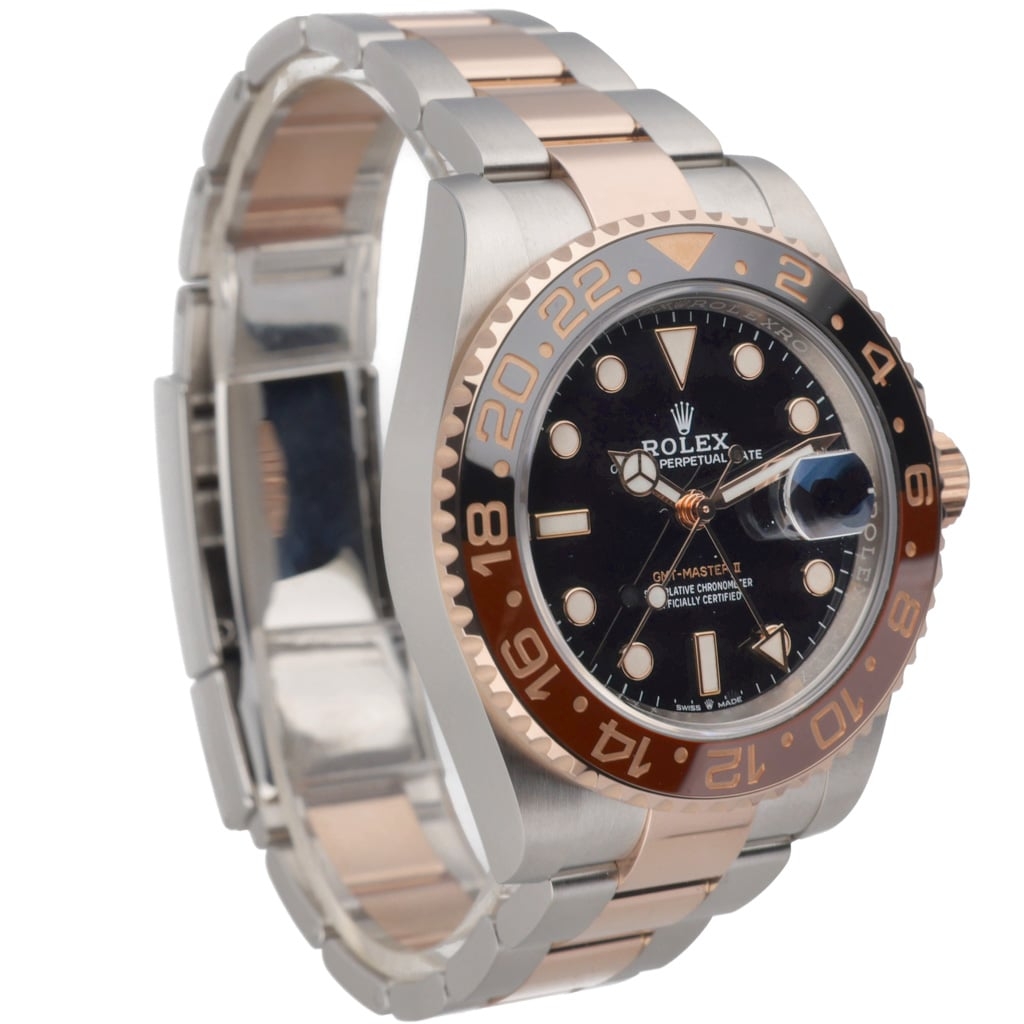 A Rolex GMT-Master II 126711CHNR, this 40mm Everose Rolesor model — combining Oystersteel with 18ct Everose gold — stands out as one of the most desirable and investment-strong modern Rolex references. Crucially, it is the only steel-and-rose-gold bi-metal GMT-Master II ever produced by Rolex, giving it a unique position within the collection and a level of long-term exclusivity unmatched by any other GMT variants. The brown and black Cerachrom (ceramic) bezel, paired with the black dial and Everose gold accents, delivers an instantly recognisable aesthetic that has seen sustained global demand since launch.