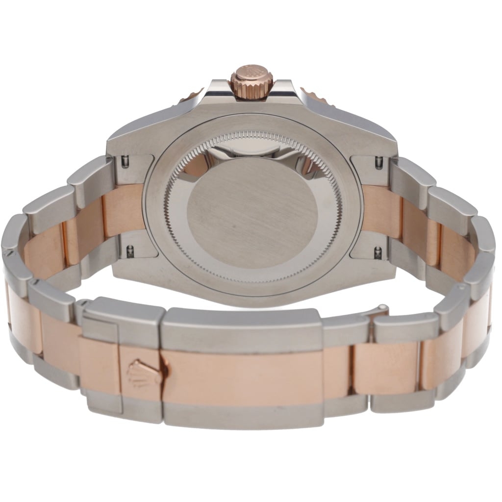 A Rolex GMT-Master II Watch, Stainless Steel and 18ct Rose Gold with a Brown/Black Bezel and a Black Dial.
