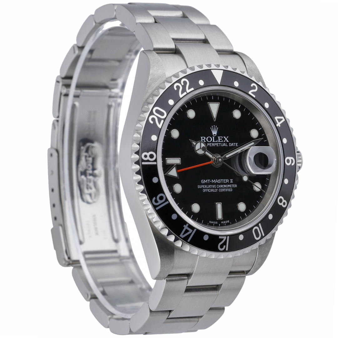 A Rolex GMT-Master II Watch, Stainless Steel with a Black Bezel & Dial.