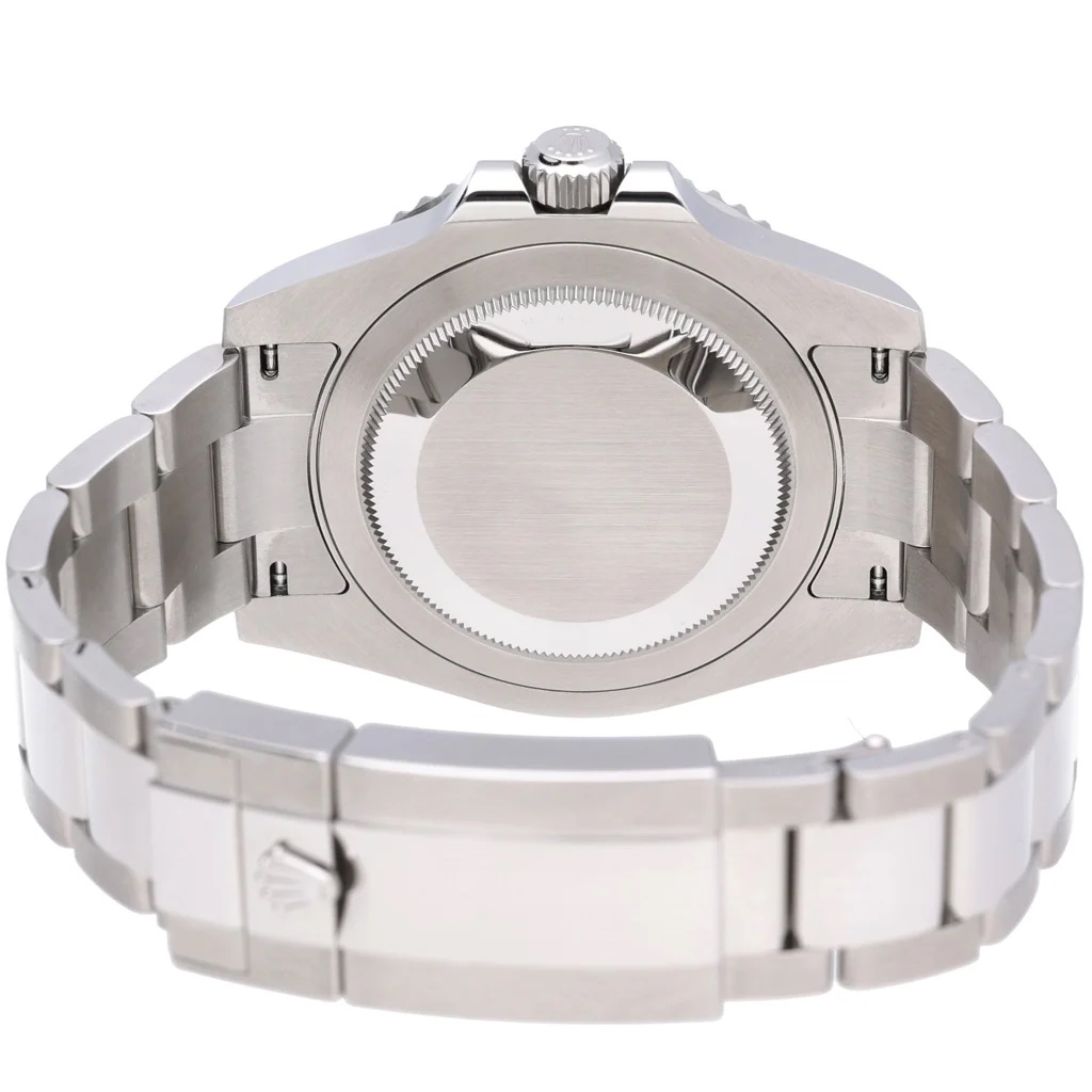 The black dial is a perfect backdrop for the luminous hour markers and hands, ensuring optimal readability in any lighting condition. The distinctive black-and-blue ceramic bezel enables dual-time zone tracking, catering to travellers and professionals who require precise timekeeping across multiple locations. The watch's rotating bezel is practical and stylish, enhancing its sporty aesthetic.
