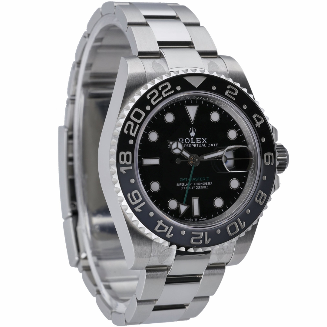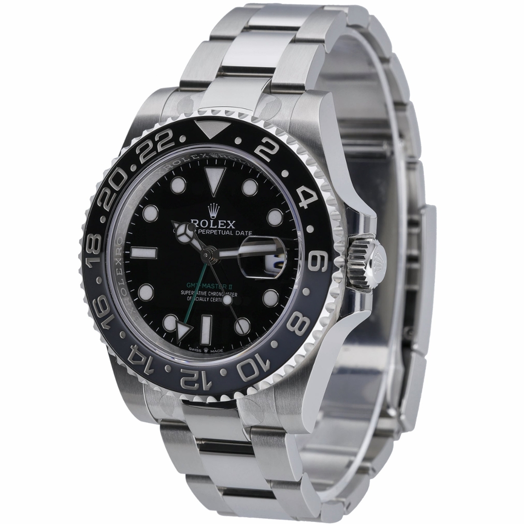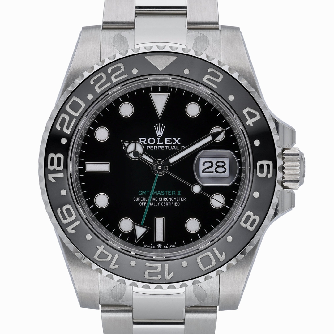 Designed for world travellers and aviation professionals, this 40mm model showcases Rolex’s innovative dual-time functionality via the bold green GMT hand, allowing the wearer to track two time zones simultaneously with ease and precision. The watch is fitted with the Oyster bracelet—renowned for its elegance and supreme comfort.