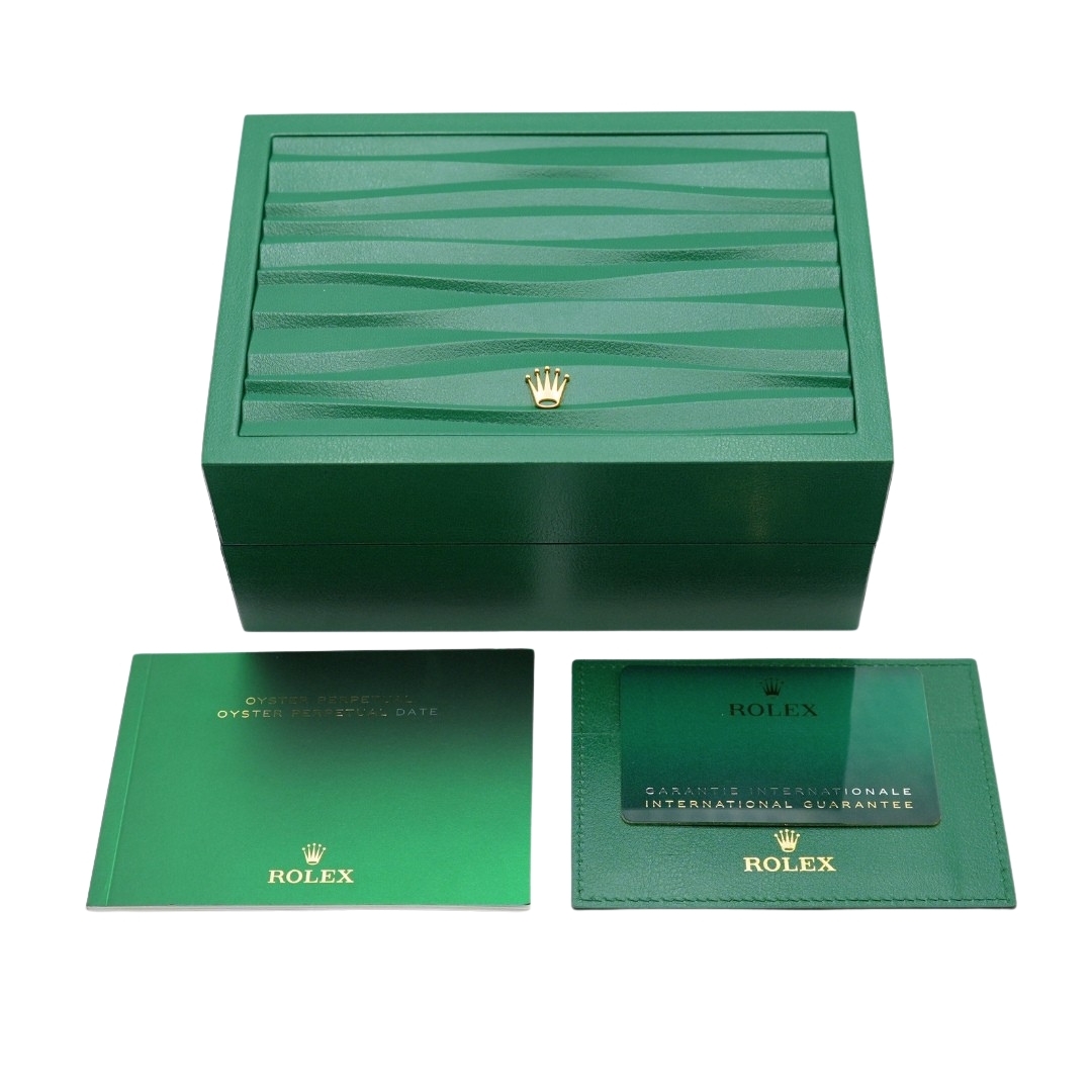 Powered by the Rolex Calibre 3230 automatic movement, this model offers outstanding precision, a 70-hour power reserve, and enhanced resistance to shocks and magnetism through Rolex’s Chronergy escapement. As a Superlative Chronometer, it guarantees consistent and reliable performance, making it ideally suited for both daily wear and long-term ownership.