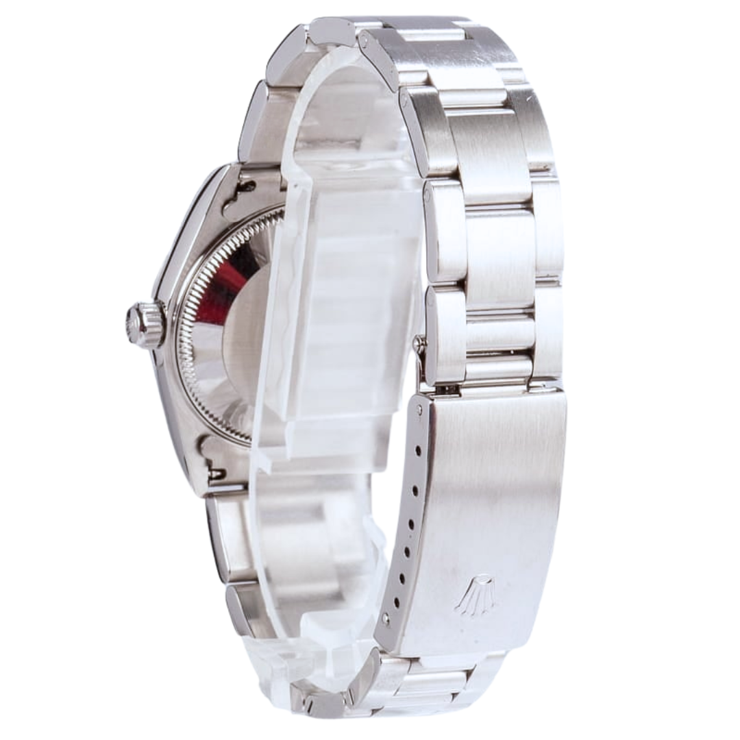 Powered by a Rolex automatic movement, offering reliable precision and durability. The 31mm case size provides a comfortable and classic wrist presence, sitting neatly between traditional ladies’ and midsize proportions, ideal for those seeking understated elegance with everyday practicality.