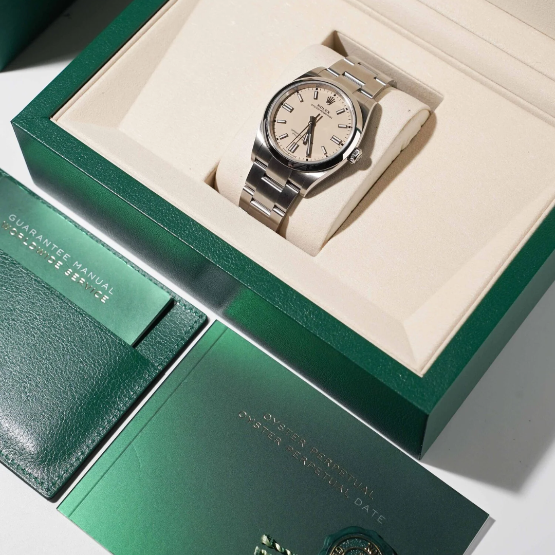 Dated 2026 and presented in immaculate condition, this example retains its original full set of Rolex paperwork, ensuring complete authenticity and peace of mind for the next owner. Supplied boxed and certified, and covered by the remaining Rolex manufacturer warranty until 2031, this Oyster Perpetual represents a highly desirable modern reference, combining contemporary performance with timeless Rolex design.