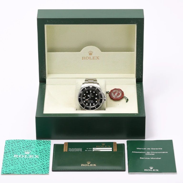 The watch is presented with its original full set of paperwork, confirming its authenticity and provenance, adding significant value and appeal to collectors and enthusiasts. It comes in a box and is certified, ensuring it is preserved and protected. The Rolex Sea-Dweller Deepsea 116660 is not just a watch; it is a testament to Rolex’s mastery in creating timepieces that combine unparalleled functionality with timeless style. Whether exploring the ocean’s depths or making a statement on land, this watch embodies the spirit of adventure and excellence.