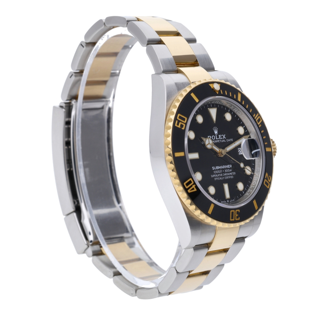 A Rolex Submariner Date 126613LN in Oystersteel and 18ct yellow gold is a perfect fusion of strength, luxury, and iconic design. Its 41mm Oyster case brings refined proportions while maintaining the legendary Submariner presence. The black dial and matching Cerachrom ceramic bezel insert provide sharp contrast against the warm tones of yellow gold, creating a look that is both striking and versatile. This model continues Rolex’s heritage as the ultimate professional dive watch, combining technical innovation with unmistakable prestige.
