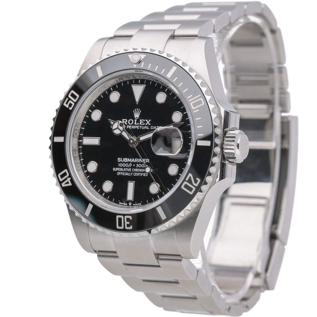 A Rolex Submariner 126610LN is a symbol of prestige and performance. This 2024 model (126610LN) embodies Rolex’s commitment to innovation and craftsmanship, offering a seamless blend of functionality and timeless elegance. Crafted from Oystersteel, a stainless steel renowned for strength and corrosion resistance, this 41-mm masterpiece exudes durability and refinement. The sleek black bezel and matching dial create a bold, unmistakable aesthetic that has defined luxury for generations.