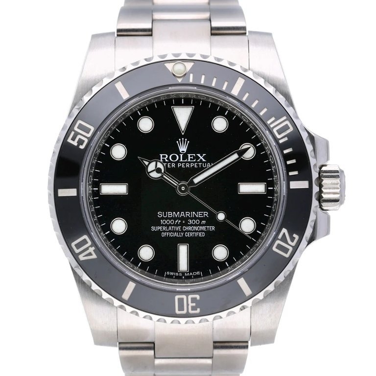 A Rolex Submariner, model 114060, is a true icon of luxury and performance, epitomising the enduring legacy of Rolex's precision craftsmanship. Crafted in stainless steel, this 2013 model boasts a 40mm case with a sleek black bezel and matching black dial, delivering a classic, understated elegance synonymous with the Submariner name.