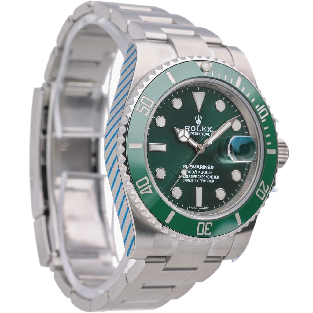 A Rolex Submariner 116610LV is a remarkable blend of style, precision, and durability. Its striking green bezel and dial make it an iconic piece within the Submariner collection. The 40mm stainless steel case offers elegance and resilience, making it suitable for casual and formal wear.