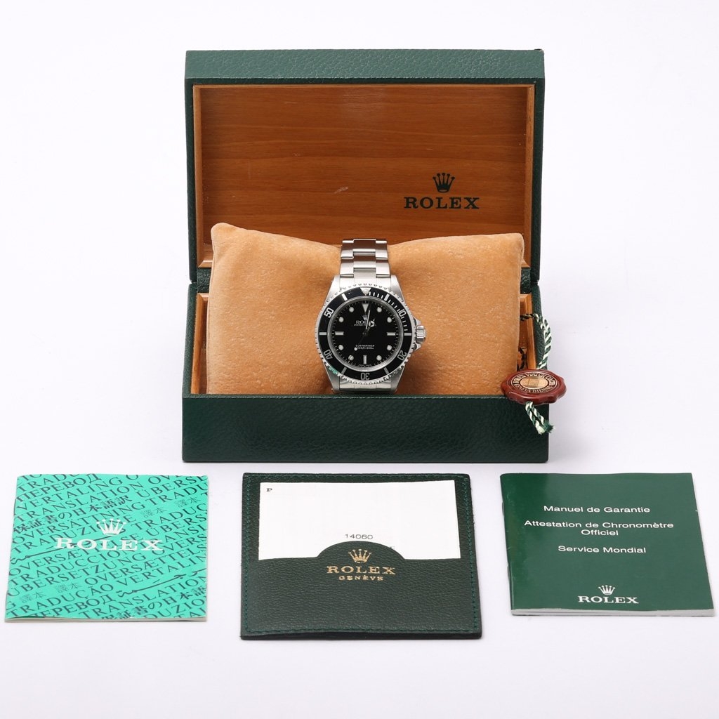 Fitted with Rolex’s automatic movement, the 14060M delivers the reliability and precision expected from the brand’s professional line, paired with a robust 40mm case that wears comfortably in any setting. The crisp black dial, luminous markers and unidirectional bezel keep the look unmistakably Submariner — a reference celebrated for its versatility and enduring appeal.
