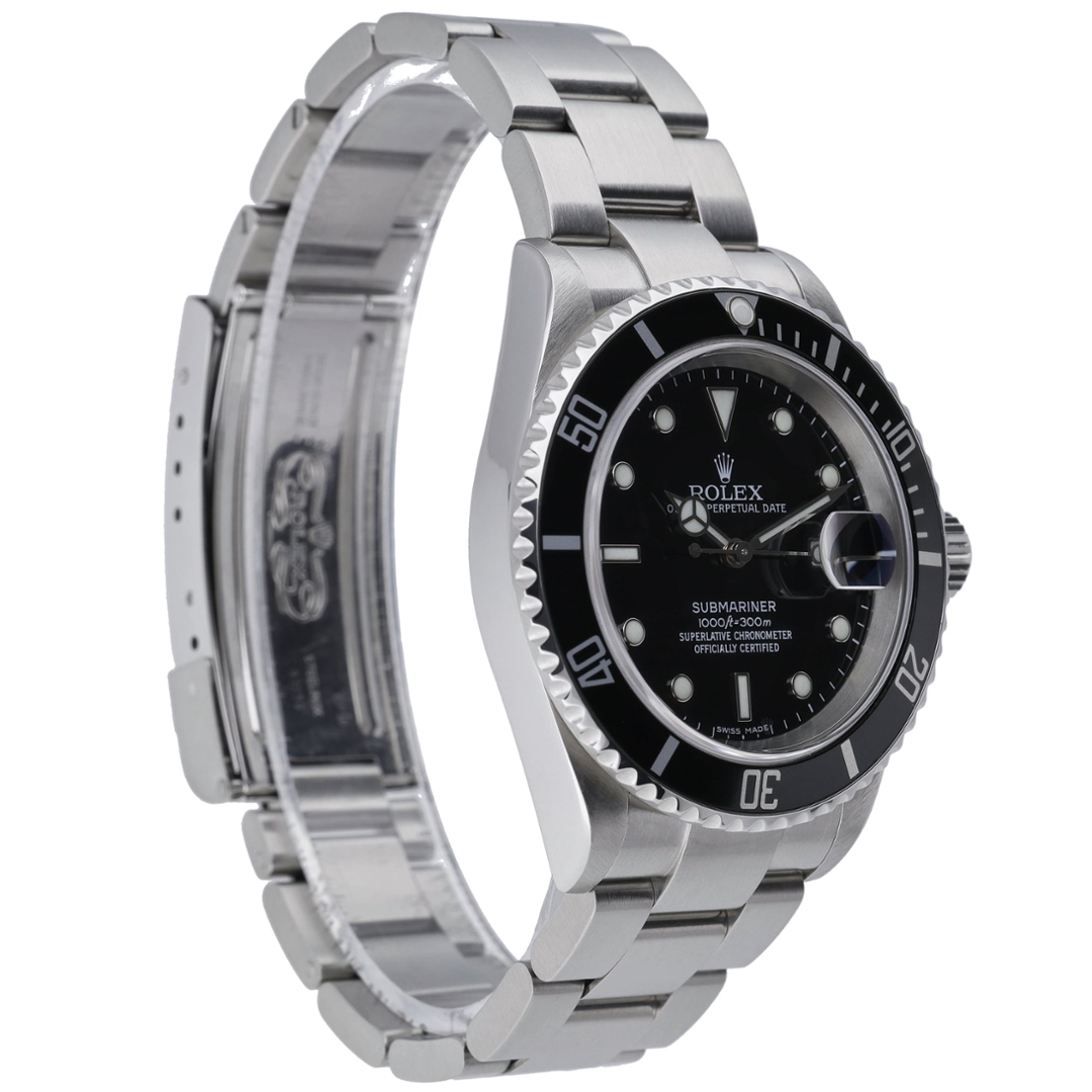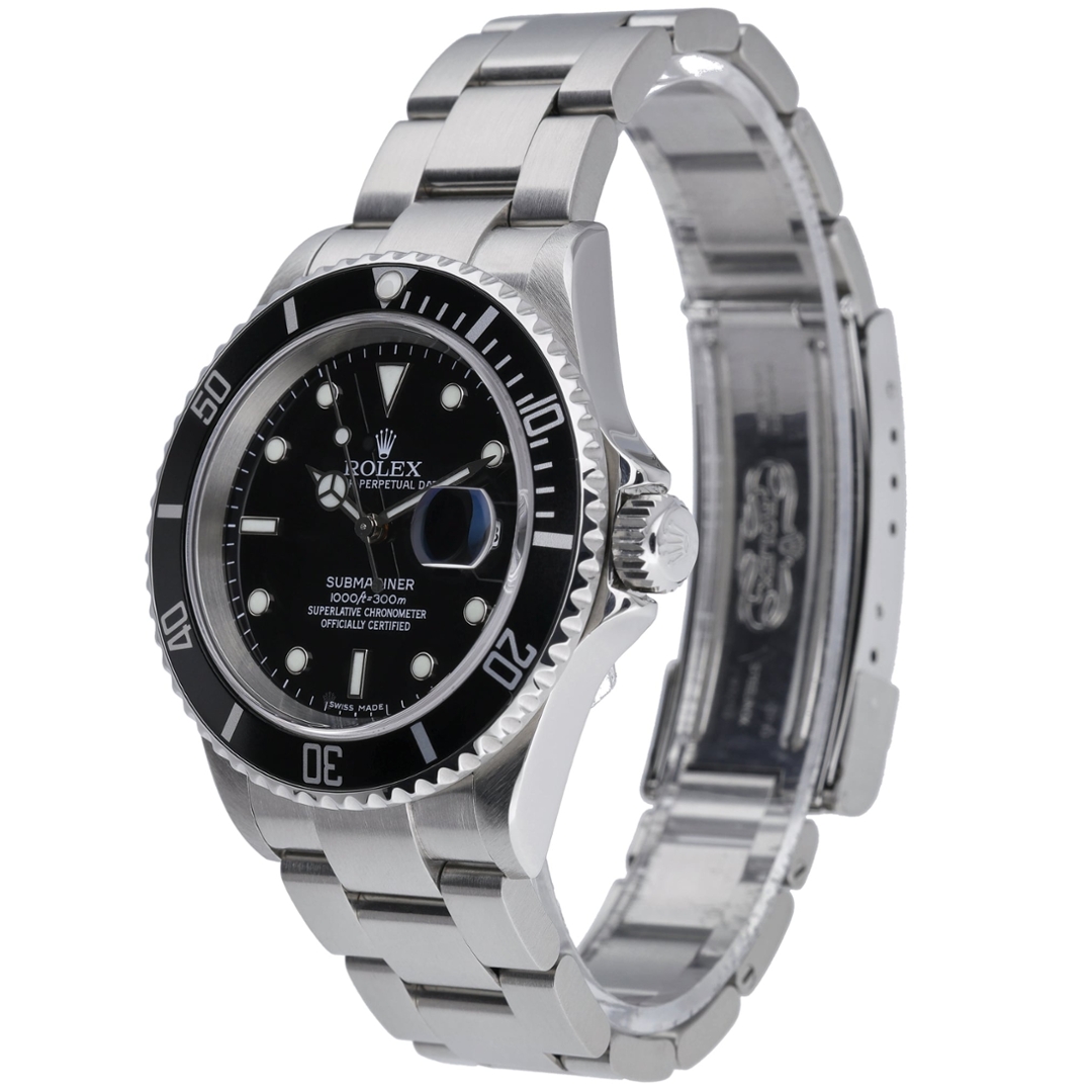 Powered by an automatic movement, the Submariner model 16610 is celebrated for its reliability and precision. The watch offers 300 meters of water resistance, making it an ideal companion for underwater adventures while maintaining its elegance for everyday wear. This model carries the classic Submariner date function with a Cyclops lens over the date window for easy viewing.