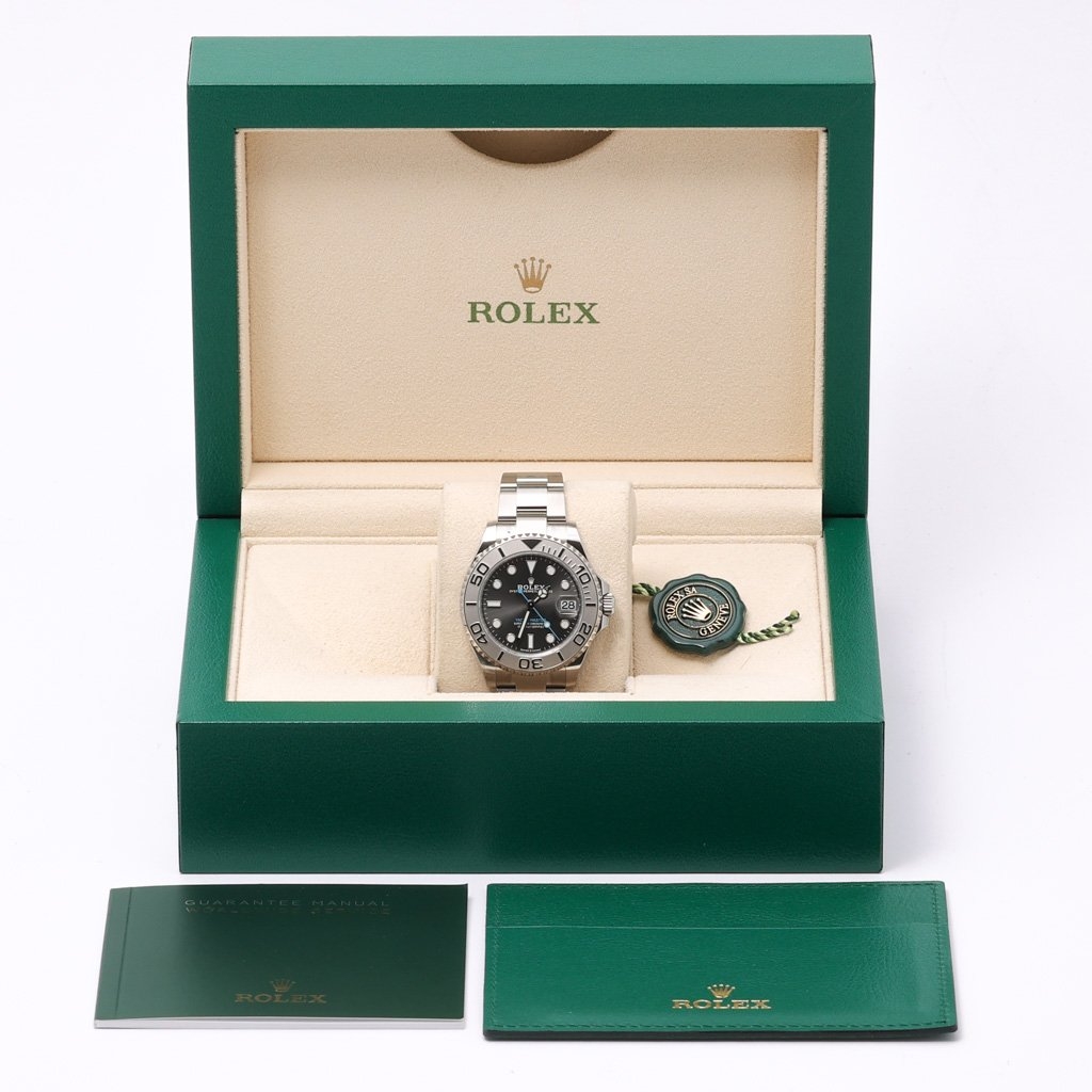 A Rolex Yacht-Master 37 Watch, Stainless Steel with a Platinum Bezel on a Slate Dial.