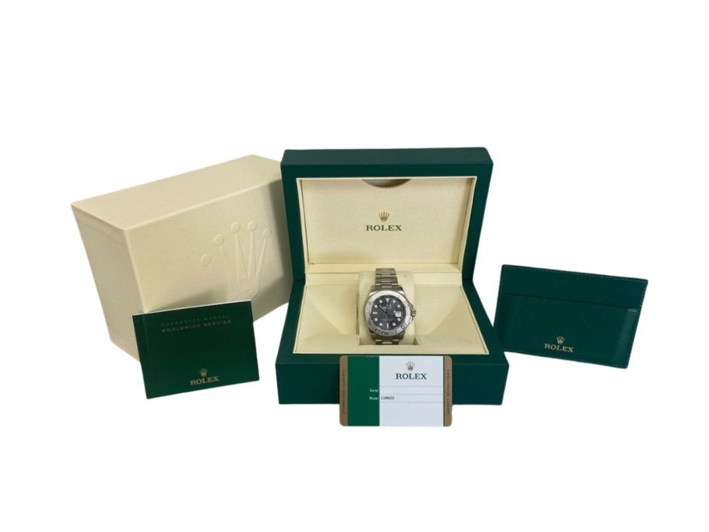 Accompanied by its original Rolex paperwork, a 12-month warranty from WLC, and presented in its official box, this watch is fully certified, offering complete peace of mind to the buyer. The inclusion of the original paperwork confirms its authenticity and provenance, further enhancing its value. The warranty provides assurance of support, should any servicing be required. Overall, this Rolex Yacht-Master is more than just a timepiece; it is a lasting symbol of luxury and reliability, making it an ideal choice for those who appreciate fine craftsmanship and timeless style.