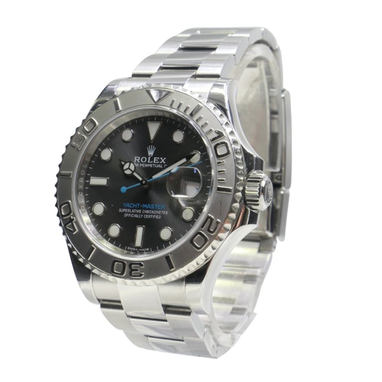 At the heart of this Yacht-Master is a reliable automatic movement, which guarantees precision in timekeeping with minimal maintenance, reflecting Rolex's commitment to functionality and convenience for its users. The impeccable condition of this watch indicates it has been meticulously maintained, with no detail overlooked. This commitment to quality ensures that the watch not only functions with exceptional performance but also retains its pristine aesthetic, making it a prized piece for any collector or enthusiast.