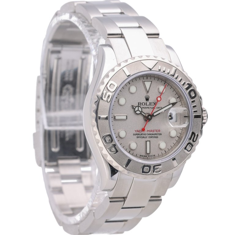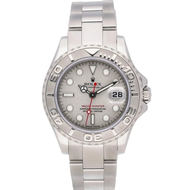 The Yacht-Master line blends sport capability with understated luxury, and this smaller-case reference is particularly appealing for those seeking versatility and comfort. The platinum bezel adds depth and distinction, while the robust Oyster case ensures everyday durability with a refined finish suitable for all settings.